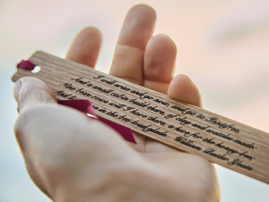W.B. Yeats Bookmark in Natural Oak Wood – Handmade Literary Gift Featuring Inspiring W.B. Yeats Quotes – Made in Sligo Ireland